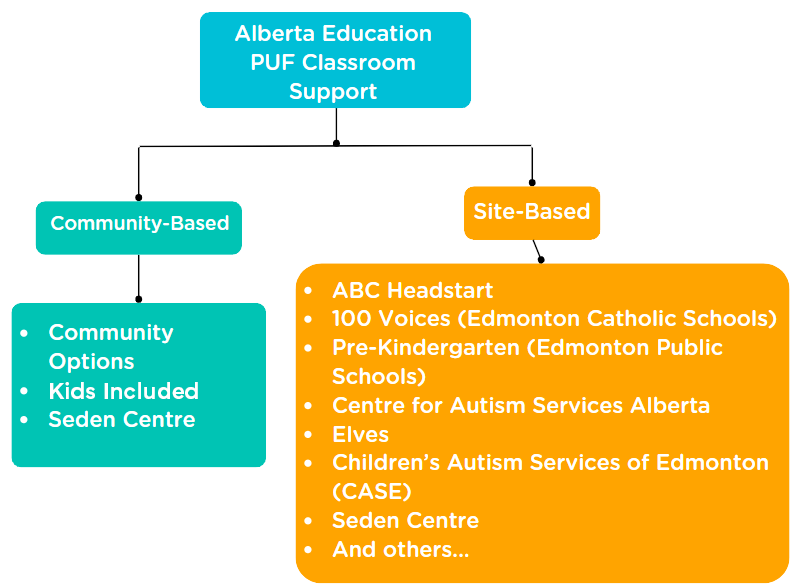 Community Preschool EducationAges 2 years, 8 months - 5 yearsEarly intervention support in community settings for children with developmental delays. Our CPE program offers services for preschool aged children by providing support in the community site of your choice (daycare or preschool). Our program is funded by Alberta Education Program Unit Funding (PUF). Children with diagnosed developmental delays, disorders, and medical diagnoses that impact their ability to successfully participate in their classroom and community settings may be eligible for services. As PUF services are provided through Alberta Education, services follow the school year calendar. Children receive services from September to June. Our program does not operate on statutory holidays, winter break or spring break. We come to you: Our team of professionals provides support in the community setting of your choice, whether that be a daycare, preschool or dayhome. We do not have an on-site PUF preschool. Family-centered program: Parents and families are the keys to a child's success! We offer Family Support Services for the whole family and our team works together with you to fully develop your child's potential. *Community Options is unable to provide support in kindergarten. Please speak to your child’s school about available supports. |